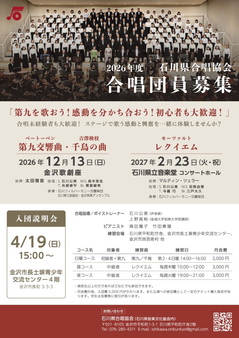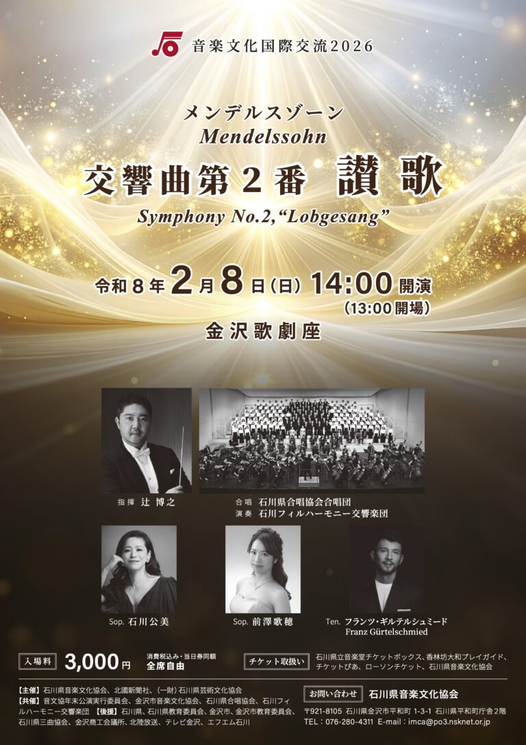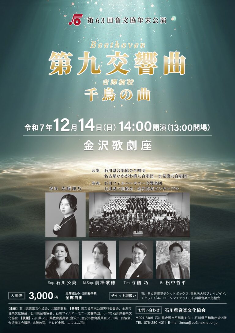 金沢の冬を彩る恒例のコンサート「音文協年末公演」が今年も開催されます。 今回で63回目を迎える本公演は、半世紀以上にわたり地元